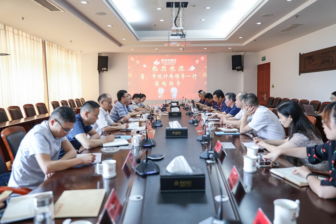 8月27日上午,,,,,,浙江省统计局能源和情形统计处副处长池照携嘉兴市统计局局长沈周明等向导在桐乡市常务副市长蔡立新、桐乡市统计局局长沈富春、洲泉镇党委书记姜伟国等陪同下莅临摩登4-梦想照进现实,努力成就未来!集团调研指导。。。。。。。集团党委书记庄奎龙、执行总裁沈健彧等热情接待。。。。。。。