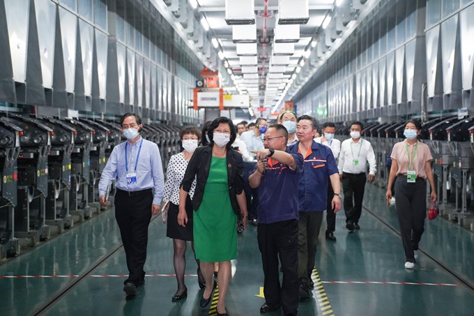 韩夏总工程师一行在庄书记的陪同下,,,,,,,深入公司5G智慧车间一线,,,,,,,周全相识纺丝、卷绕、包装、立体客栈等运行情形,,,,,,,并听取了《5G+工业互联网 助力打造化纤强国》报告,,,,,,,她充分一定了集团在工业数字化、数字工业化上取得的效果,,,,,,,指出:摩登4-梦想照进现实,努力成就未来!是承继乌镇天下互联网大会立异精神的规范,,,,,,,塑造了化纤“未来工厂”新样板,,,,,,,走出了一条“5G+工业互联网”高质量生长之路。。。。。。。。同时,,,,,,,希望企业捉住新一轮科技革命和工业厘革的重大历史机缘,,,,,,,继续推进“5G+工业互联网”融合应用,,,,,,,壮大数字经济生长新动能,,,,,,,塑造树立新标杆,,,,,,,加速赋能行业和区域高质量生长,,,,,,,为智造强国再立新功。。。。。。。。