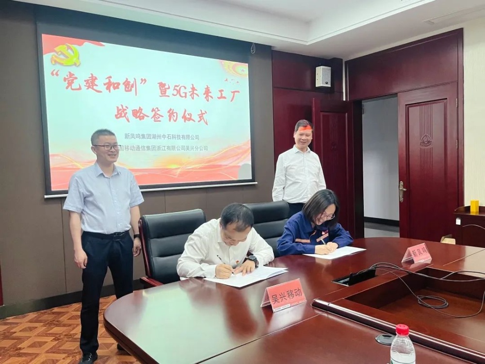 为推动未来工厂建设,,,,,,,加速新智造历程和5G在企业中的应用落地,,,,,,,5月19日下昼,,,,,,,摩登4-梦想照进现实,努力成就未来!集团湖州基地与中国移动通讯集团浙江有限公司吴兴分公司“党建和创”暨5G未来工厂战略相助签约仪式在中石聚会室顺遂举行。。。。。。。。吴兴区统计局党组书记、局长,,,,,,,发改经信局党组副书记唐伟杰,,,,,,,东林镇党委书记陆敏、副镇长张佩方等相关向导一行出席签约仪式。。。。。。。。