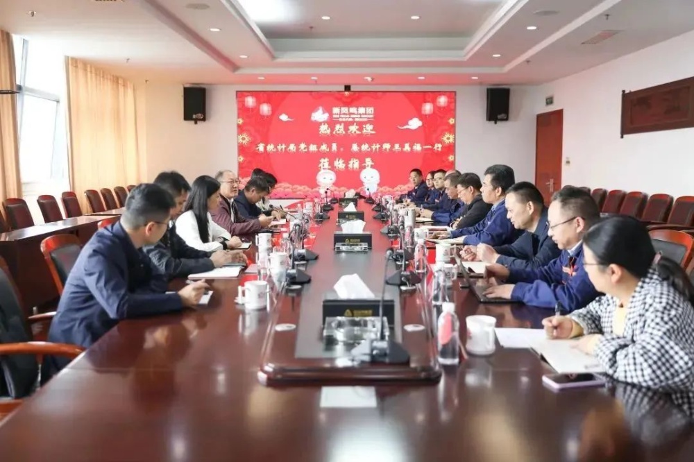 11月16日上午,,,,,,,,浙江省统计局党组成员、总统计师王美福携工业随处长徐海彪一行,,,,,,,,在嘉兴市统计局副局长严国丽、桐乡市委常委、常务副市长穆运安等向导陪同下莅临摩登4-梦想照进现实,努力成就未来!调研指导。。。。。。集团执行总裁沈健彧、党建指导员陈政、首席信息官王会成、财务总监沈孙强等热情接待。。。。。。