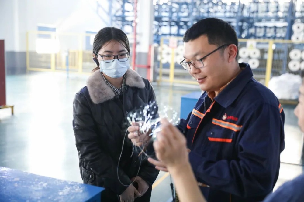 张市长一行在沈总的陪同下,,,,,,,深入一线生产车间走访考察“聚酯长丝未来工厂”,,,,,,,详细相识了5G智能化、信息化建设情形,,,,,,,并重点听取了公司概况、上下游情形及化纤行业走势等汇报。。。。。