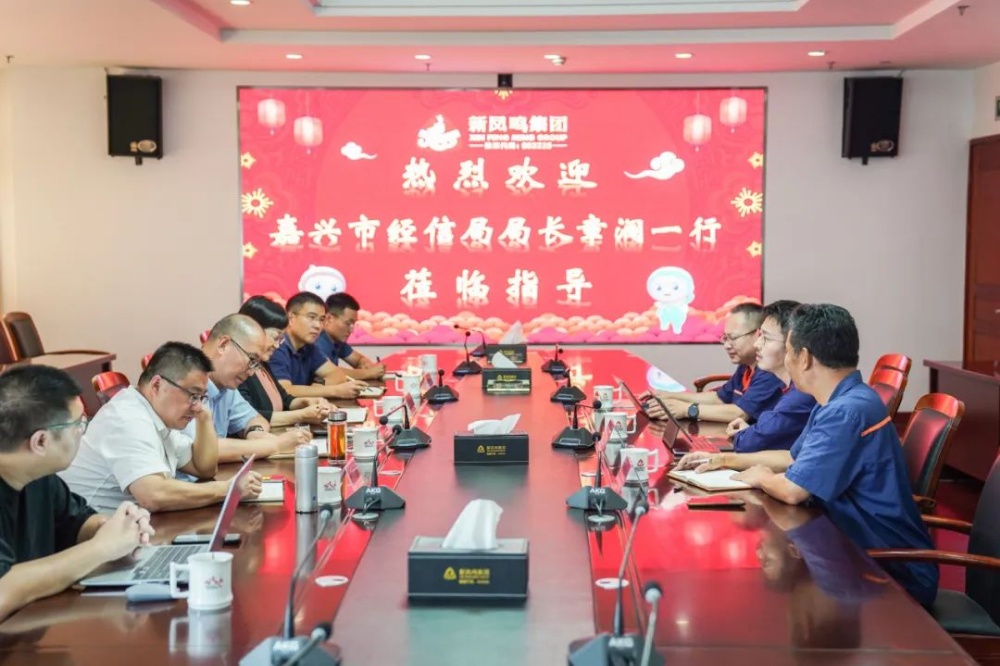 9月7日下昼,,,,,,,嘉兴市经信局局长章澜携副局长张东阁一行,,,,,,,在桐乡市经信局局长颜跃华等向导陪同下莅临摩登4-梦想照进现实,努力成就未来!调研指导,,,,,,,集团董事长庄耀中、执行总裁沈健彧、控股集团总裁助理王会成等热情接待。。。。。。。。