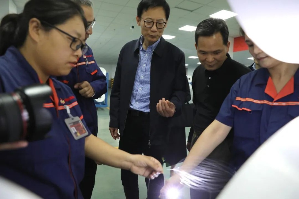 李总向赵主任一行先容了公司在产品研发、智能制造升级等方面的步伐和效果,,,,,并体现外地政策优、效劳好,,,,,一连引发公司生长新活力,,,,,关于下一步打造化纤工业园区,,,,,实现工业链集聚施展了强有力的助推作用。。。。。。 。