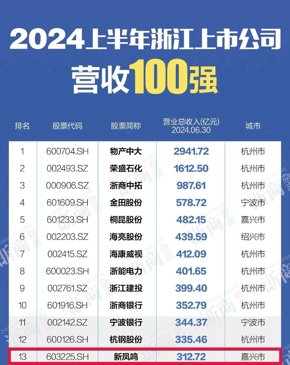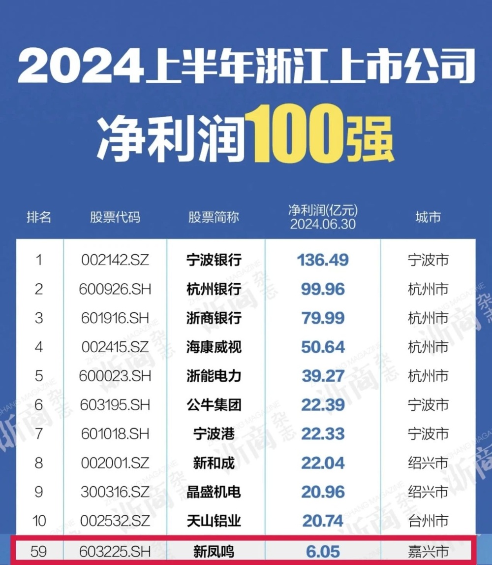 克日,,,,,2024上半年浙江上市公司营收、净利润双百强榜出炉。。。。。。。。摩登4-梦想照进现实,努力成就未来!以312.72亿元营收,,,,,位列13位;;;;;以6.05亿元净利润,,,,,位列59位,,,,,较去年前进16位。。。。。。。。