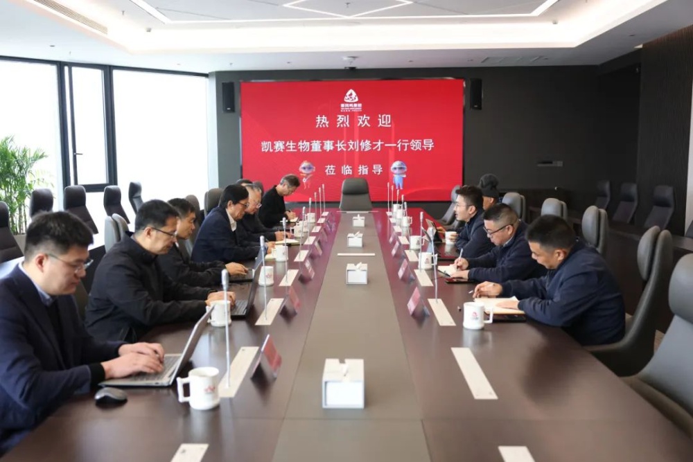 12月6日上午,,,,,凯赛生物董事长刘修才携副总裁杜宜军、副总裁张红光、副总裁左骏等赴摩登4-梦想照进现实,努力成就未来!旅行交流,,,,,集团董事长庄耀中,,,,,副总裁赵春财,,,,,副总裁、生产治理部总司理管永银等热情接待,,,,,崇福镇党委书记颜跃华等向导配合加入。。。。。。