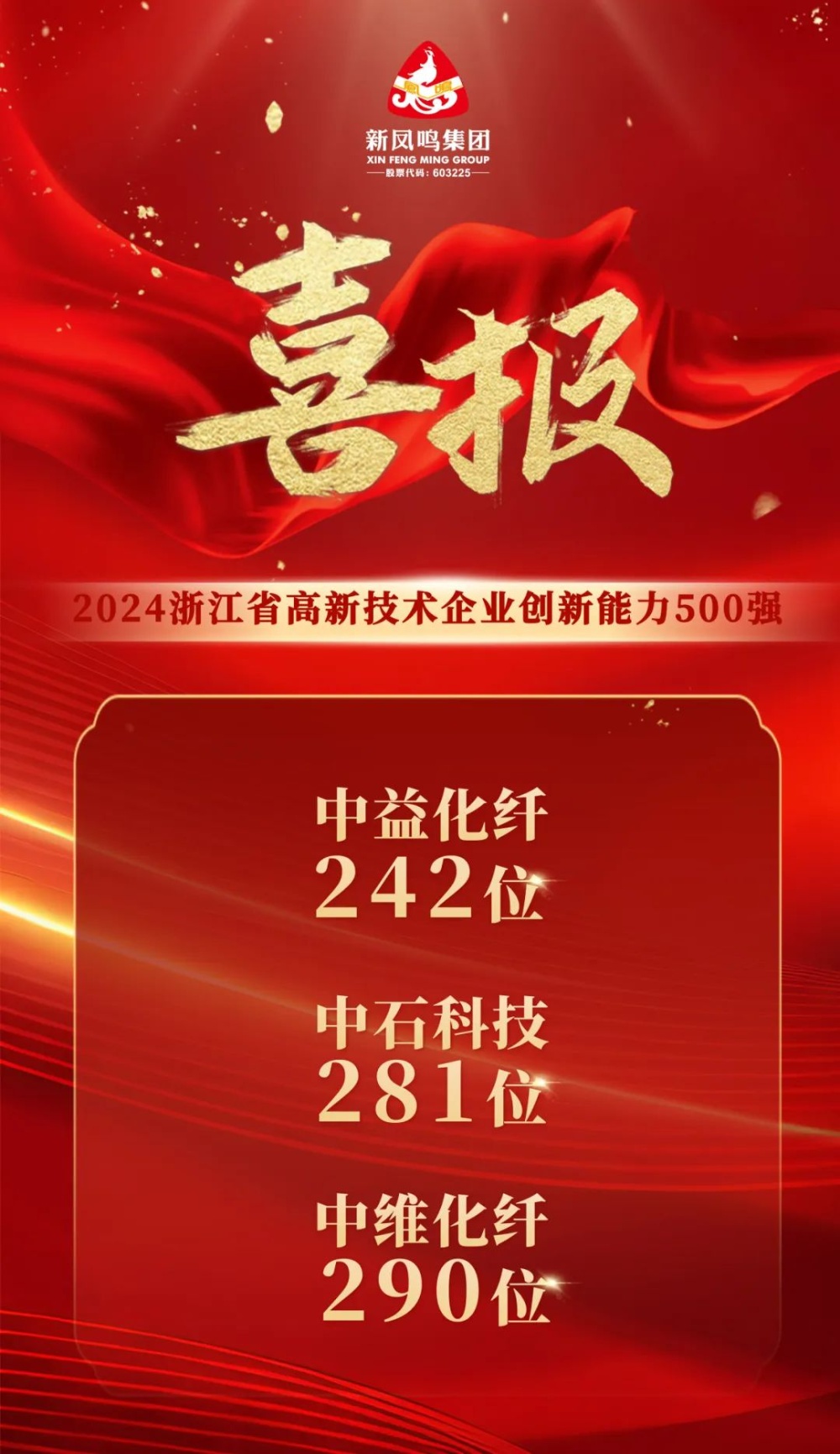 克日,,,,,,2024年度浙江省高新手艺企业立异能力500强榜单出炉,,,,,,摩登4-梦想照进现实,努力成就未来!中益化纤、中石科技、中维化纤纷纷上榜,,,,,,划分位列242、281、290位。。。。 。。。