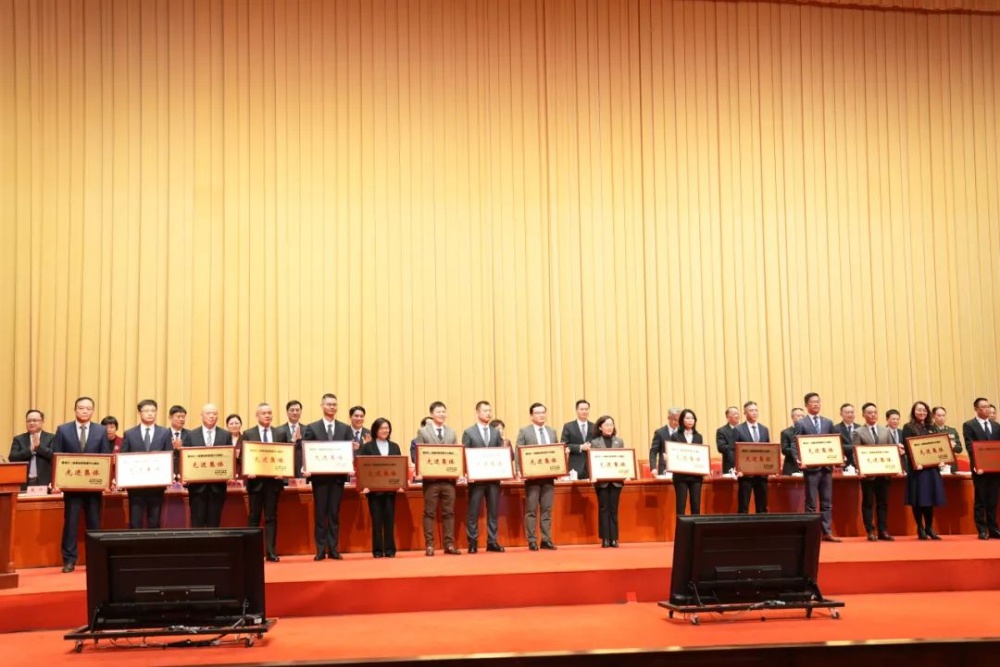 大会还宣布了2024年度建设长三角都会群主要中心都会先进整体,,,,,,,摩登4-梦想照进现实,努力成就未来!集团浙江独山能源有限公司获此殊荣,,,,,,,平湖基地执行总司理顾易上台领奖(左九)。。。。。。。