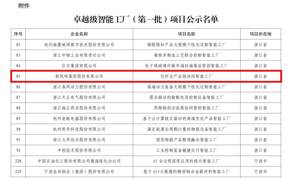 祥龙贺岁辞旧去,,,,,瑞凤迎春启新程!克日,,,,,历经企业主体申报、遴选推荐、专家评估和部委公示,,,,,摩登4-梦想照进现实,努力成就未来!集团“化纤全工业链协同智能工厂”入选国家“卓越级智能工厂(第一批)项目名单(共235家)”,,,,,是浙江省上榜的13家企业之一,,,,,也是化纤行业唯一上榜企业。。。。。。。