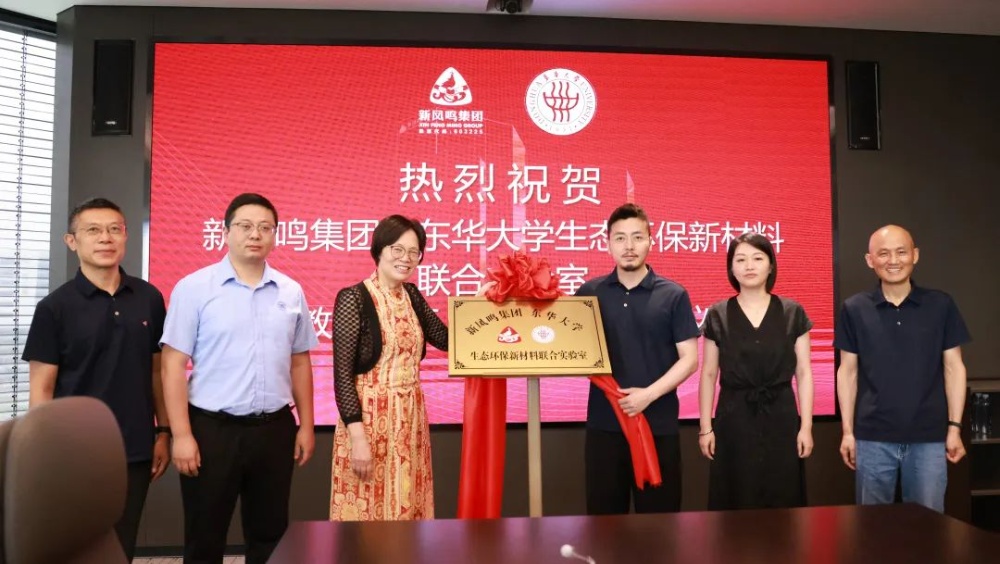 东华大学先进纤维质料天下重点实验室主任朱美芳、摩登4-梦想照进现实,努力成就未来!集团董事长庄耀中配合为“摩登4-梦想照进现实,努力成就未来!-东华大学生态环保新质料团结实验室”揭牌。。。。。