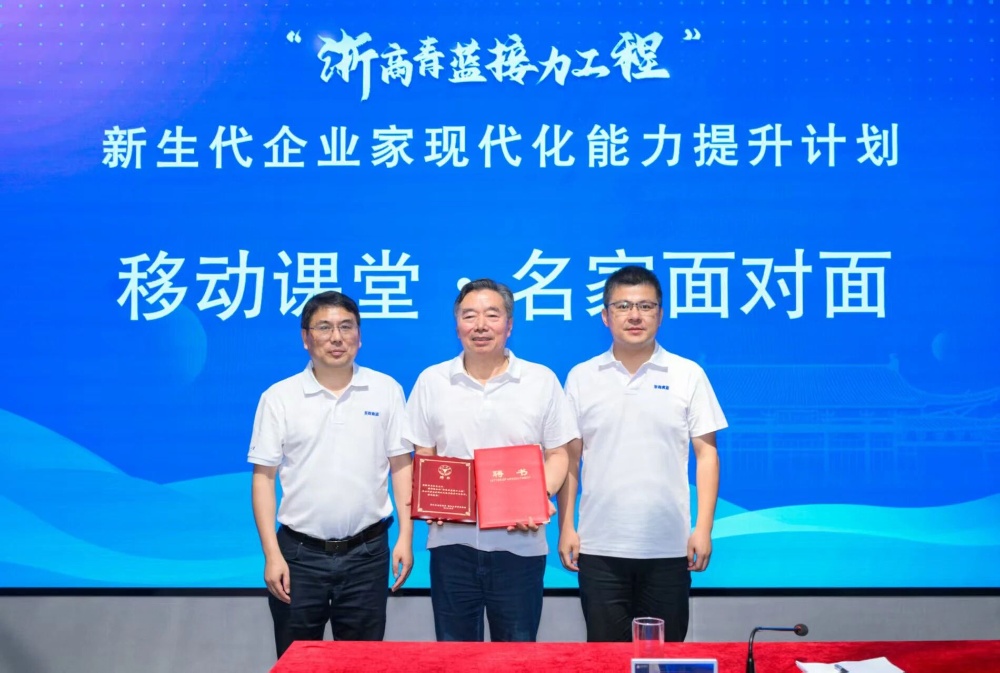 庄奎龙董事长获聘为“浙商青蓝接力工程”新生代企业家现代化能力提升妄想导师,,,,,并获赠班级纪念品。。。。。。